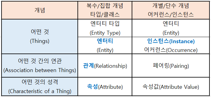 고객정보 -> 속성, 성별, 생년월일 -> 속성 값