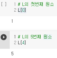 e.g L = [1, 2, 3]이면 L[0]은 1이고, L[2]는 L[-1]이며 3이다.