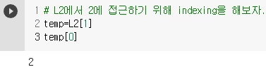 # L2에서 2에 접근하기 위해 indexing을 해보자.