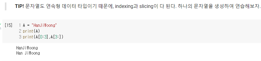 - 리스트의 index와 :를 사용하여 슬라이싱을 할 수 있다.